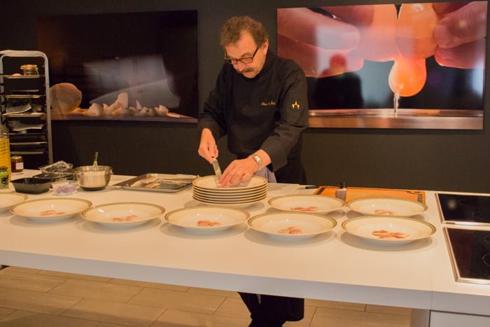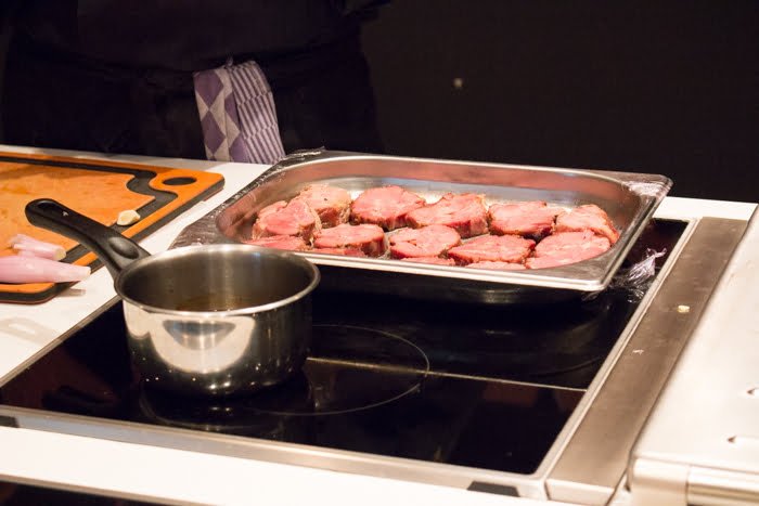 Eenmaal terug bij de Echoput gingen we naar de bijbehorende kookschool waar we precies konden zien hoe meesterkok Theus de Kok 4 verschillende gerechten voor ons bereidde. Wat ontzettend gaaf om zo’n meesterkok aan het werk te zien! De recepten waren eenvoudig, maar dankzij de juiste bereiding en ingrediënten van de beste kwaliteit kwamen er heerlijke gerechten uit voort. Natuurlijk proefden we tijdens het eten ook verschillende soorten wijn, maar ik moet eerlijk zeggen dat de gerechten er voor mij echt uitsprongen. Theus maakte vrijwel alleen gebruik van lokale, verse producten. De groenten kwamen van een boer vlakbij en het vlees natuurlijk rechtstreeks van de Veluwe.